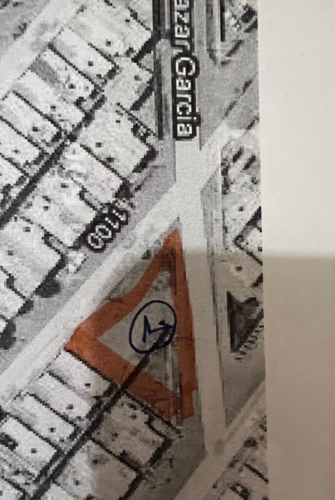 - Terreno plano: 495m². Frente: 36 metros Otros: 5 lados, pequeño desnivel, cabeza de manzana. Letrero de"Vendo" visible.